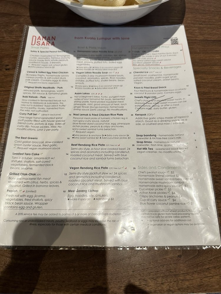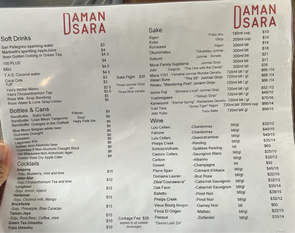 Damansara Co. Menu